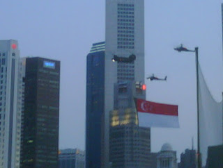 If I’m not mistaken, the theme of National Day this year is to show how Singapore ready for any terrorist attacks. When me and friends ready to go to see National Day Parade or F16 or fireworks or whatever they offer on that day, it’s almost evening and the enter ways to Esplanade area and Marina Floating Point (where the ceremony held) were already closed, but on the way there I still got the chance to see President helicopters group carrying the Singapore flag, and some F16 aircrafts.