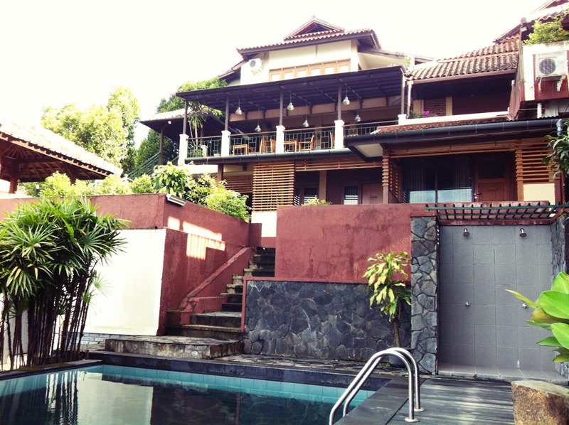 What I like was the small garden with dining tables in the backyard. It was green, peaceful and relaxing. Actually I decided to book this guesthouse because of that garden. They served the breakfast there. The breakfast included: lontong sayur (a traditional Indonesian breakfast), breads with jams, coffee and tea, and fruits. It was good!