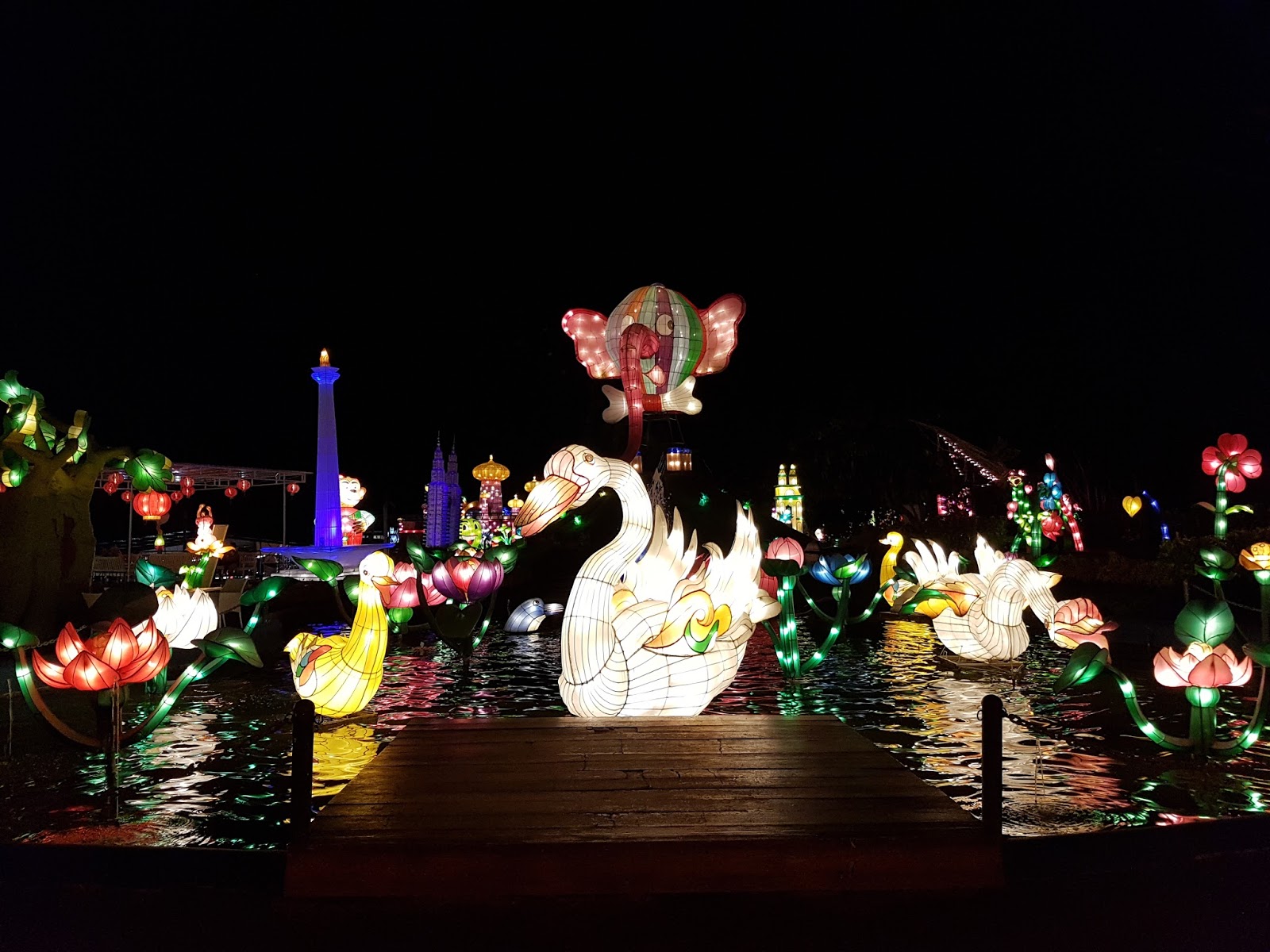 BNS (IDR10,000/ride), or purchase full ticket for all rides since the beginning in ticket counter in front (IDR100,000 including entrance fee). Since our daughter was too young to take any ride, we just purchased the entrance tickets. Then inside, after having dinner first in the food court, we bought one ticket for our child to play in toddler playground (IDR10,000/hour) while waiting the rain stopped. After the rain stopped, we went to Lantern Garden, by paying another tickets fee IDR15,000/person. There are lanterns shaped like animals and buildings, very beautiful. Around 10pm we called it a day and order Taxi Citra again to go back to Hotel. Each taxi trip from