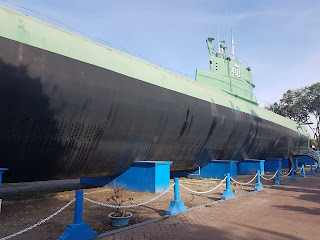 From the mosque we continued the journey to Monumen Kapal Selam (Submarine Monument). The real submarine Pasopati 410 was brought here by splitting it in few pieces and assemblied them again, dedicated for Indonesian navy army and fighters. Entering this long submarine, I was amazed how people could stand living in the tiny spaces like this for few months. From the submarine, we went to video room to watch the history of Submarine Pasopati 410. There are also canteen with nice riverview (and the river is quite clean) and kids swimming pool (that is dirty and neglected). This monument is opened from 8am to 10pm with entrance fee IDR10,000/person.