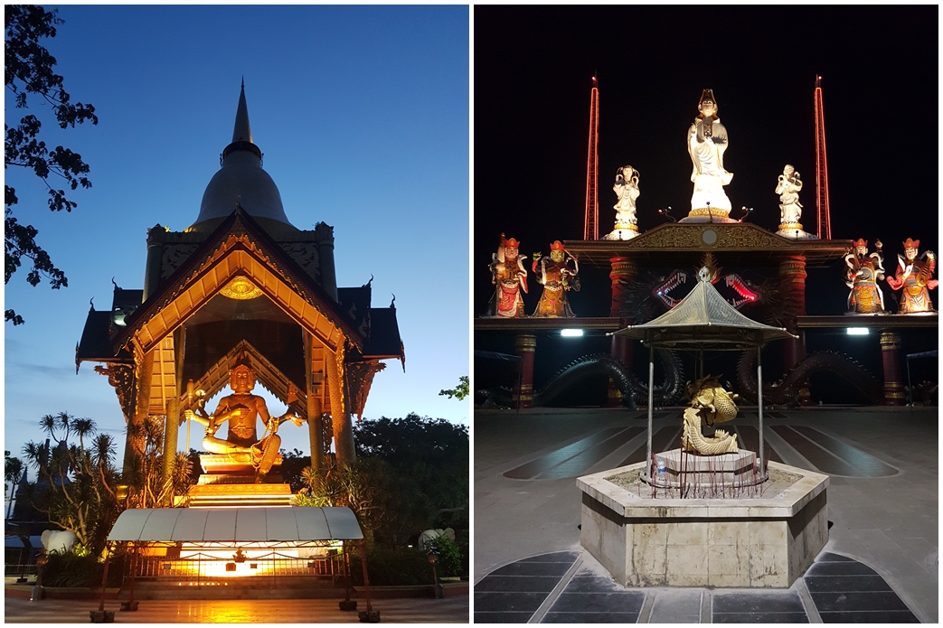 Four Faced Buddha and Kwan Im Goddess Statues in Kenjeran Park