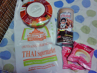 Done having dinner, we browsed the supermarket. As usual, my friend stocked herself with Thai foods for 1-2 weeks. She asked me to try some too. So I bought home an Instant Tom Yam Noodle, Koh Kae Peanuts and Strawberry Cakes. I tried Koh-Kae before, but never the coffee flavor, so I bought that one. It’s good!