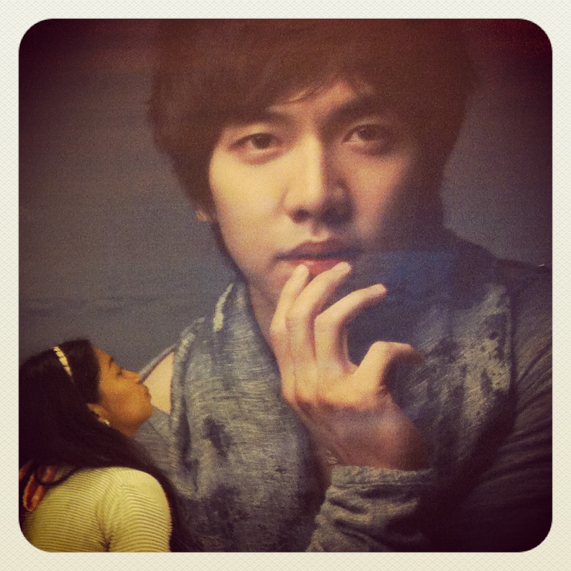 Kissing his poster in Taman Anggrek Mall 😛 |