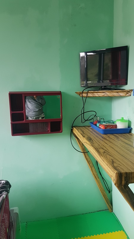 Kamarnya sempit, ada 1 meja gantung, TV kecil di dinding, 1 double bed yang nempel ke dinding dan kamar mandi dengan air panas. Sederhana banget, tapi cukup. Kami diberikan 1 termos berisi air minum panas, tapi kalau mau ambil sendiri bisa juga di ruang tengah lantai 2. TV di kamar ternyata tidak dapat sinyal jadi tidak bisa nonton dari kamar. Setelah makan malam, Suami ngajak anak kami Nad ke lantai 2 buat nonton di atas bareng keluarga lain yang menginap disana, biar dia ga terlalu bosen di kamar. Ga terlalu lama, setelah itu kami semua tidur cepet karena kecapekan, bingung mau ngapain lagi dan besoknya mesti bangun sebelum subuh.