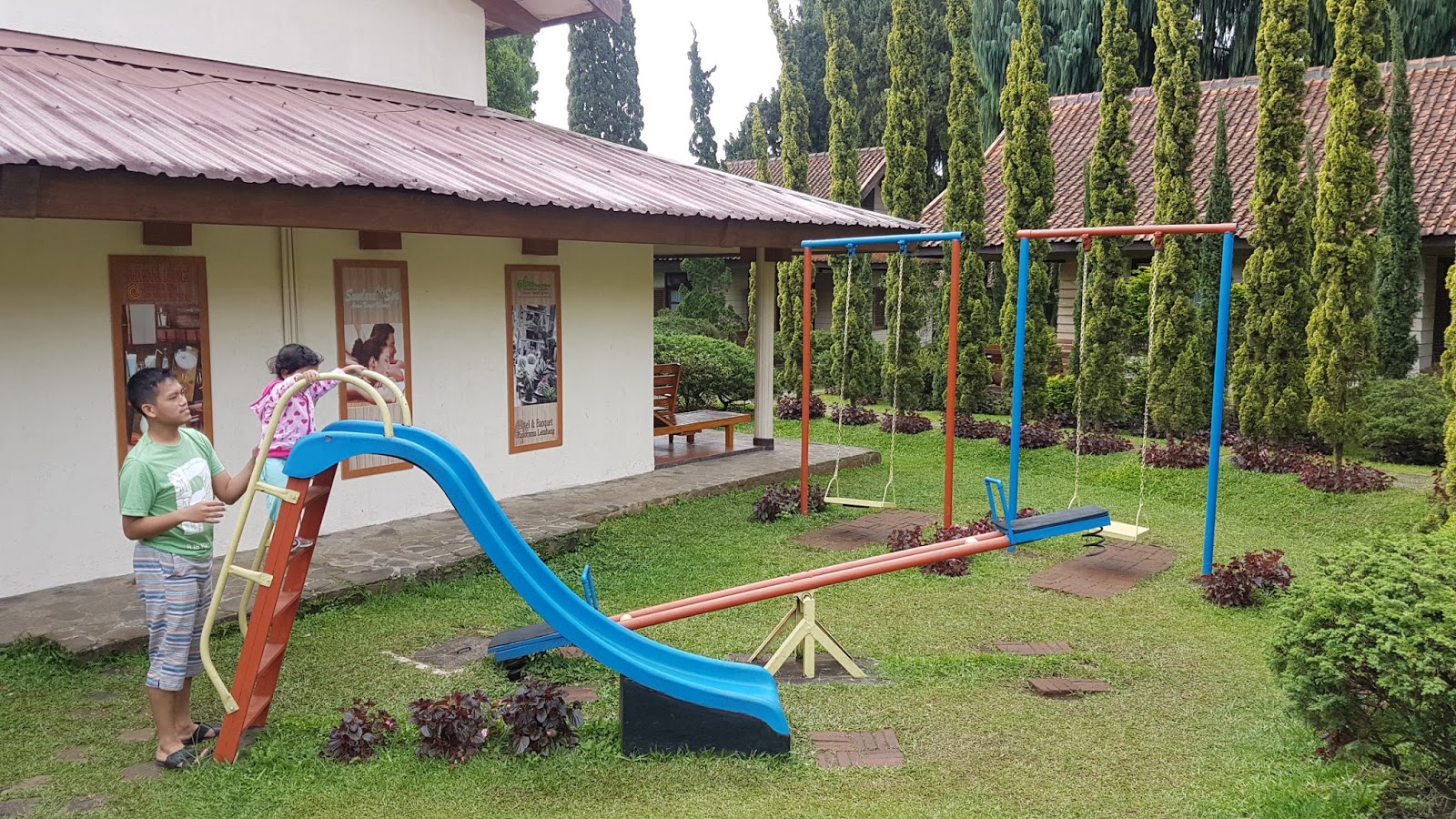 The next morning we spent a long relaxing time in the hotel. We sat in our terrace while snacking and sipping coffee. Then we walked around the hotel complex and took our daughter to play in the children playground. The playground only consist of 3 basic S: Slide, Seesaw and Swings; but those are good enough to entertain our kid. While the kid playing, parents can watch them while enjoying the green refreshing panorama of surroundings. Maybe that’s where its name comes from.