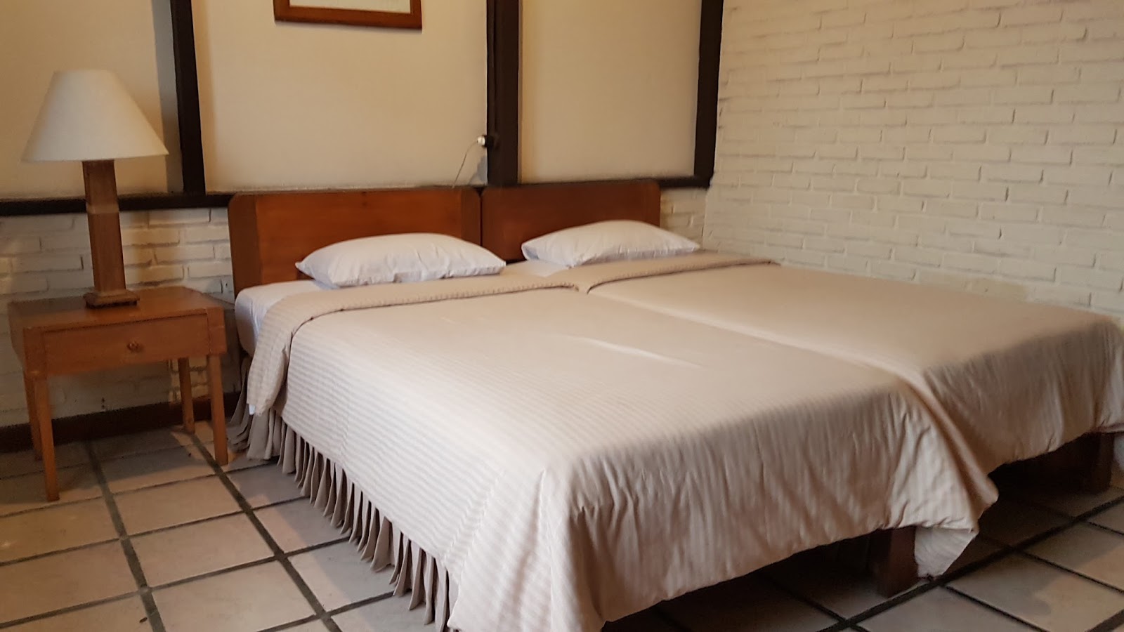 I booked the hotel via Traveloka around 10 days before the stay. I got price around Rp.940,000 for 1 night in a cottage with 2 bedrooms. When we arrived, we saw many buses parking in its large parking lot. I read in internet reviews that this hotel was indeed used commonly by big group like employee gathering or conference. The lobby is decorated with traditional ornaments with a little bit Balinese and Javanese style. Upon check-in, we received welcome drinks. At first they said the drinks must be consumed in the lobby. We waited a little bit but since we were already too tired we just left it and went to our cottage. Surprisingly not long after, they brought the drinks to our cottage hehe.