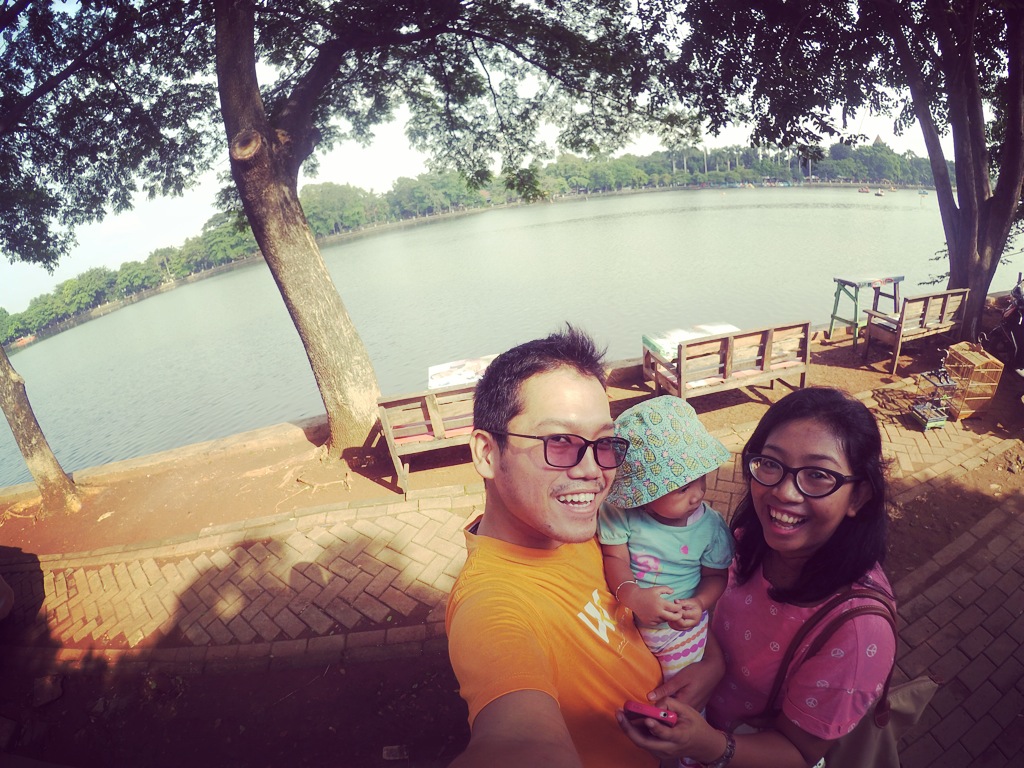 The paving block path along the lake was big, and should have been comfortable to walk if only it’s closed for vehicles. It’s very disappointed to see cars and motorcycles passing the path, and we pedestrians should move aside. Our daughter, who just started walking, could not walk freely there because of the vehicles passing by (some of them were even passing fast), and in the end we carried her all the time because afraid she would suddenly walk to the middle of the path.