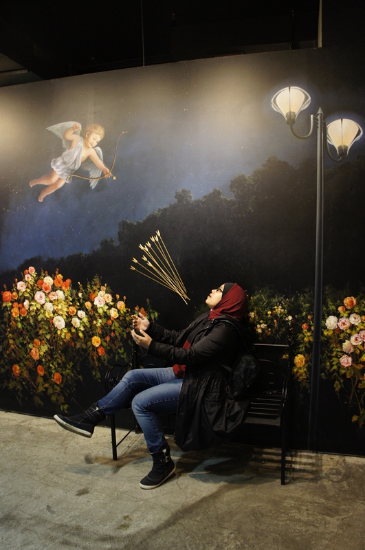 This museum was located in the 7th floor of Pasaraya shopping mall. It was not as big as Trick Art Museum in Seoul, but quite entertaining. If there’s not much people (last time on Friday night we were the only visitors :P), you could finish it in 1 hour. The area was divided by few sessions based on their theme: famous painting session, Korean session, animal session, and so on. I think some new arts were coming as they’re working on them. As you can see, some trick arts were the same with the ones in Korea. One must-have art in Trick Art Museum was definitely Angel Wings.